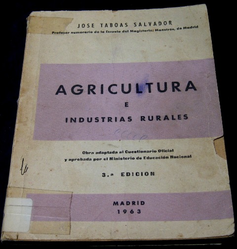 *.- AGRICULTURA E INDUSTRIAS RURALES José Taboas Salvador Profesor numerario de la Escuela del Magisterio, Maestros, de Madrid, Obra adaptada al Cuestionario Oficial y aprobada por el Ministerio de Educación Nacional. 3a Edición, Madrd 1963, 190 págs. 207grs. TB 20x15cms, E2-E3, FI, SE, 15€,