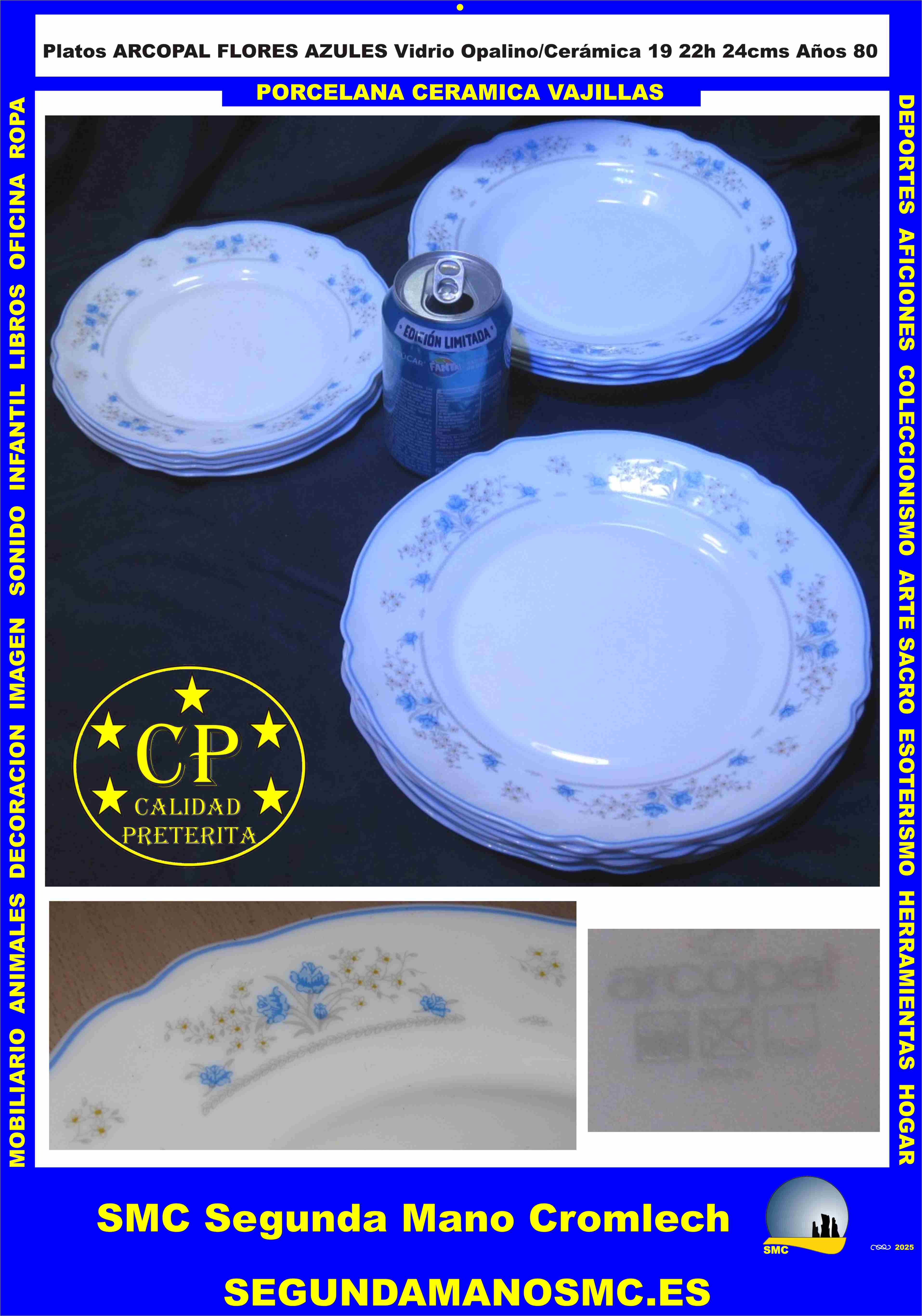 Platos ARCOPAL Vajilla FLORES AZULES Vidrio Opalino/ Cerámica Años 80 Buen estado.