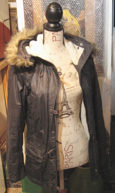 CHUBASQUERO CAZADORA CHAQUETA Mujer Azul Marina con Capucha y cuello con pelo. HyM Talla EUR34